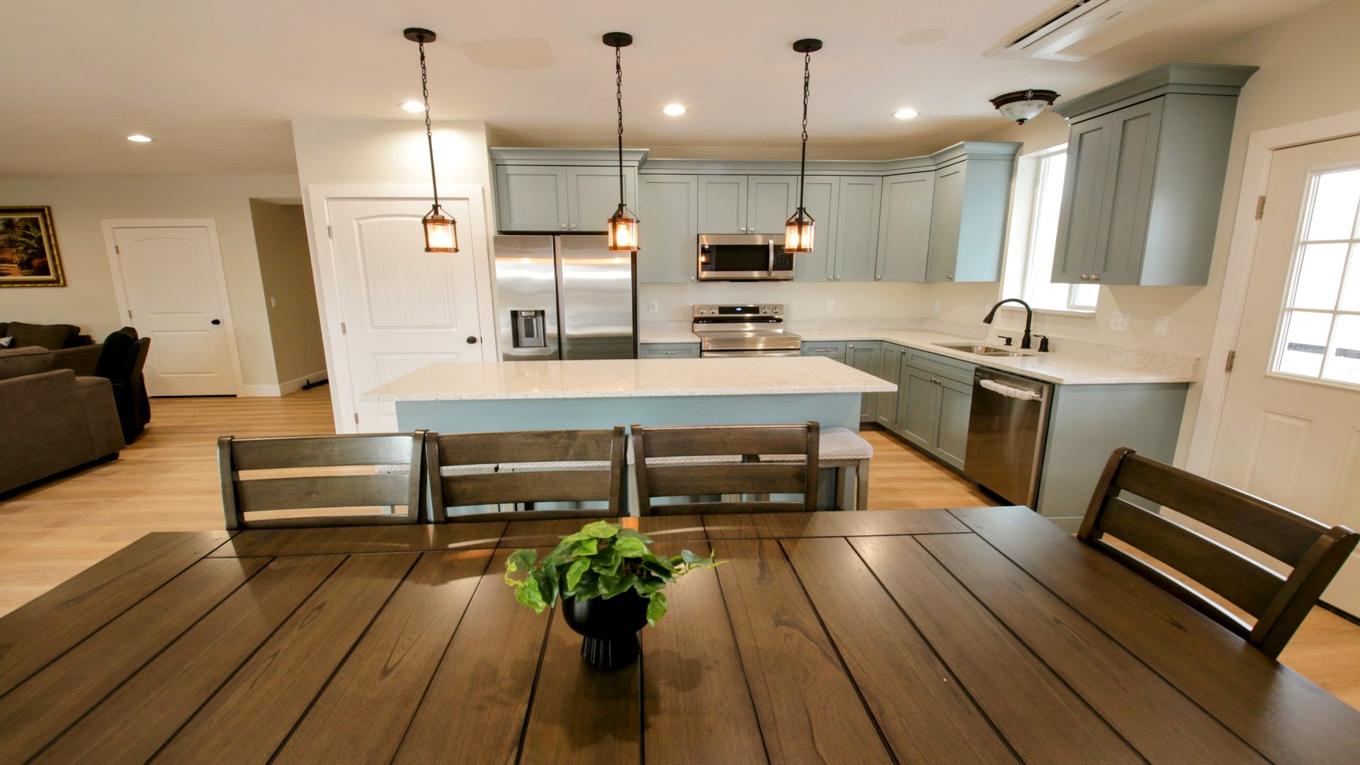 Pendant lighting over island