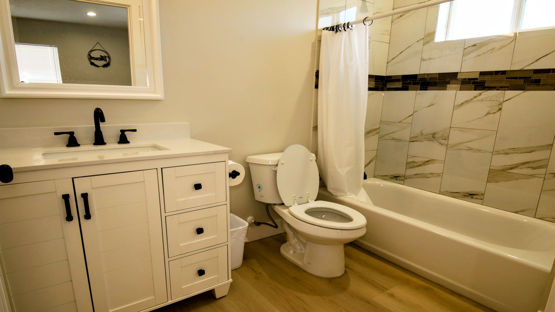 Modern fixtures, tile surrounds, and premium finishes