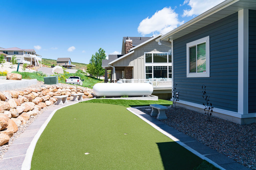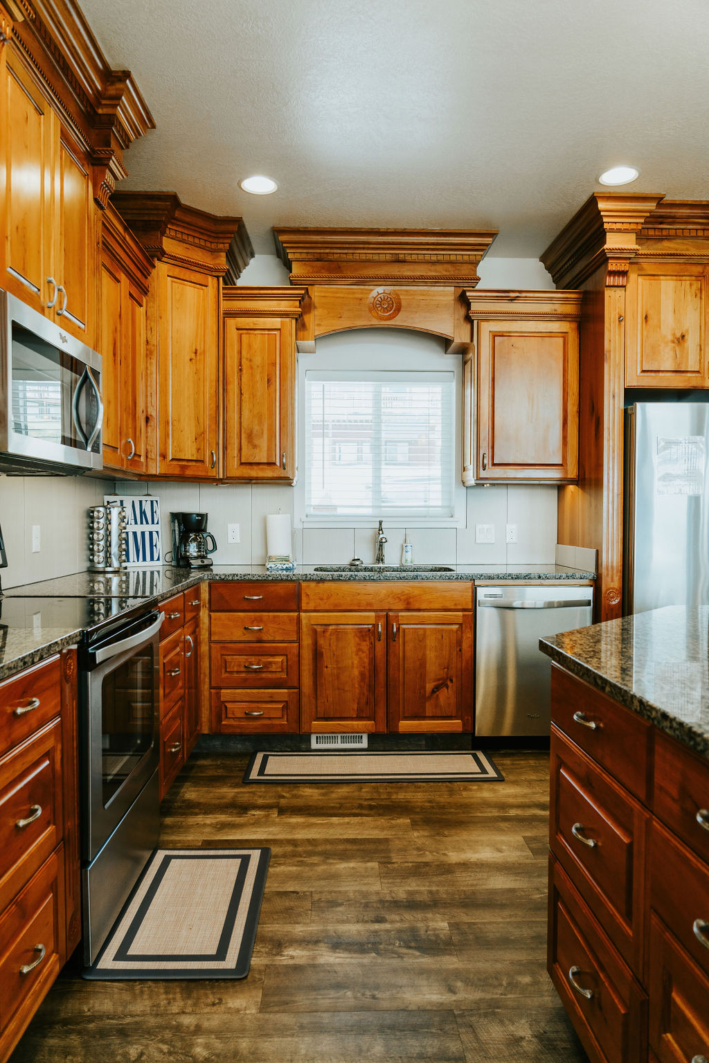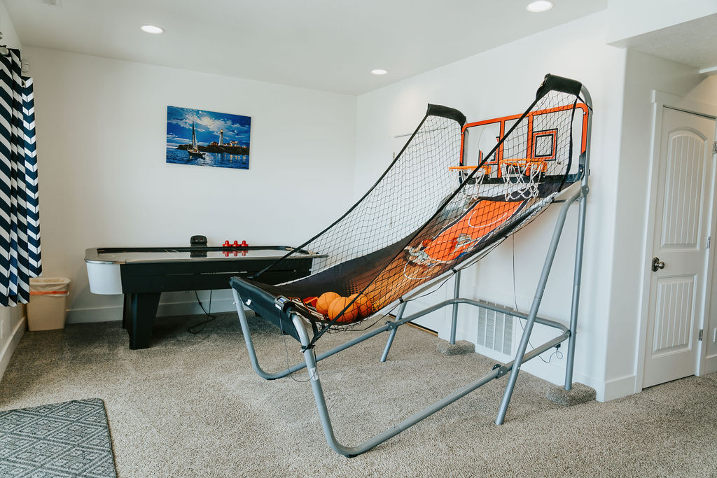 The Raspbeary Retreat home is a golfers delight! Spend the morning perfecting your swing on your own private putting green overlooking the beauty of the lake. Newly installed hot tub makes it a perfect way to wind down the day. Perfect for your next family getaway or group gathering, complete with a game room and bunk beds for the kids. The large deck has plenty of seating with picnic tables to enjoy those afternoon barbecues. Spend time in the yard playing a challenging game of horseshoes while the little ones enjoy the swing-set, 22 foot slide and tether-ball activities. There is plenty of room and plenty of activities and recreation for everyone to enjoy!